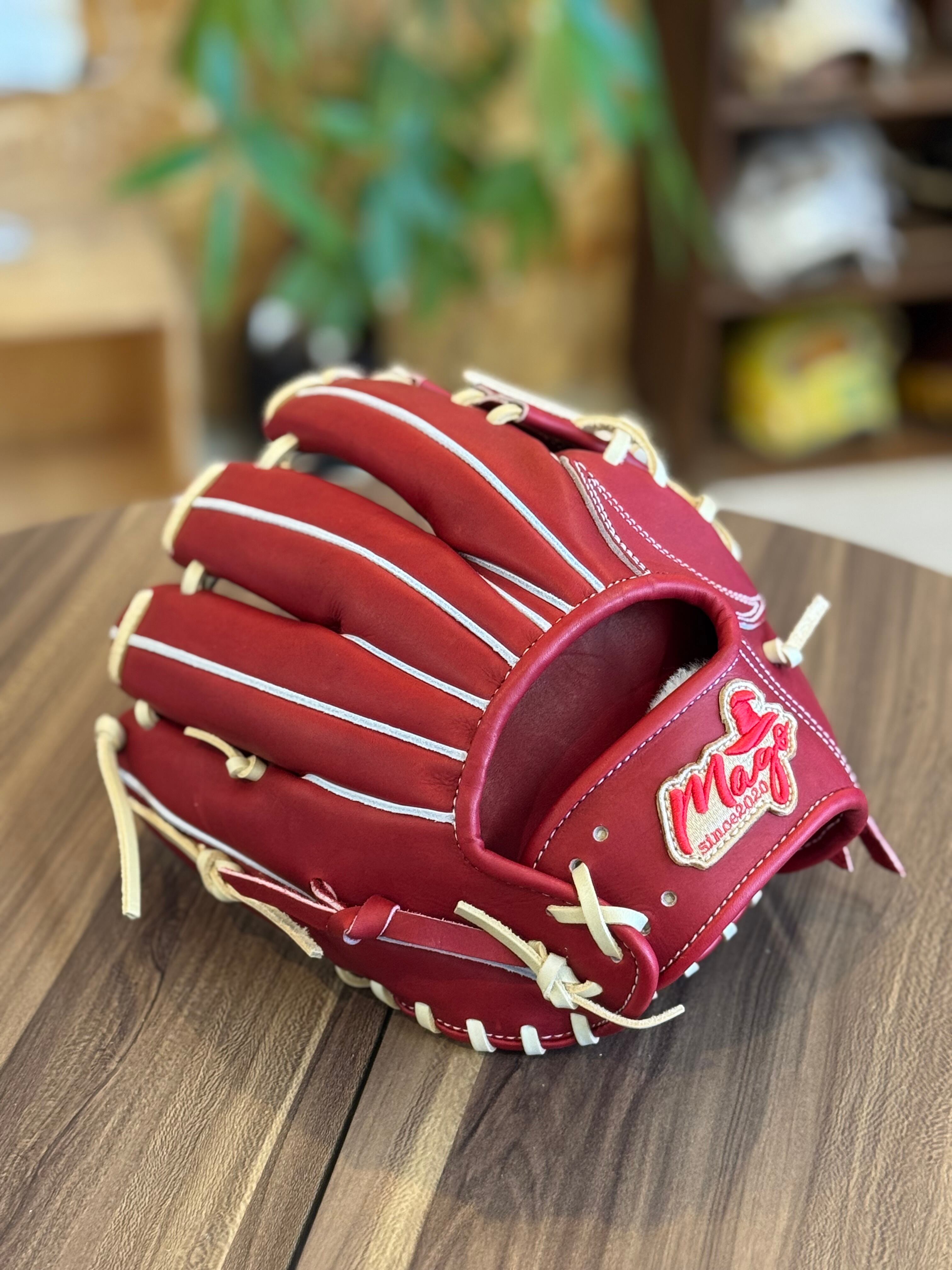 【即納可能】Mago 硬式内野手 Hウェブ 指股あり小型 ボルドー×キャメル紐 MSR-H01