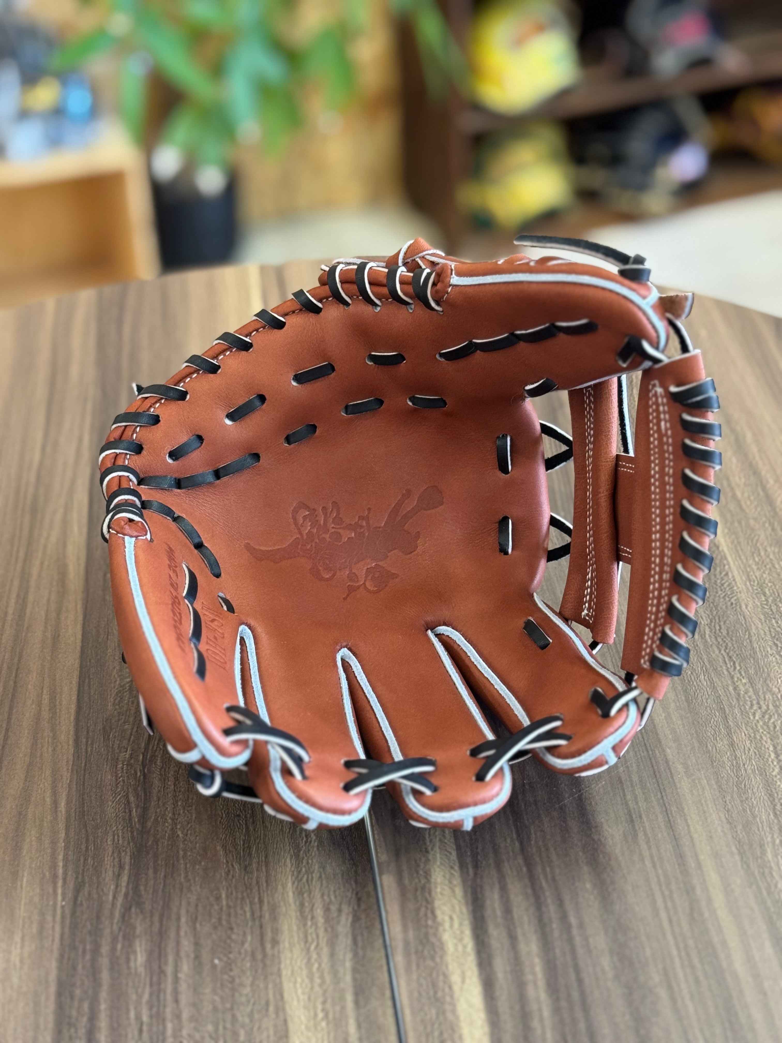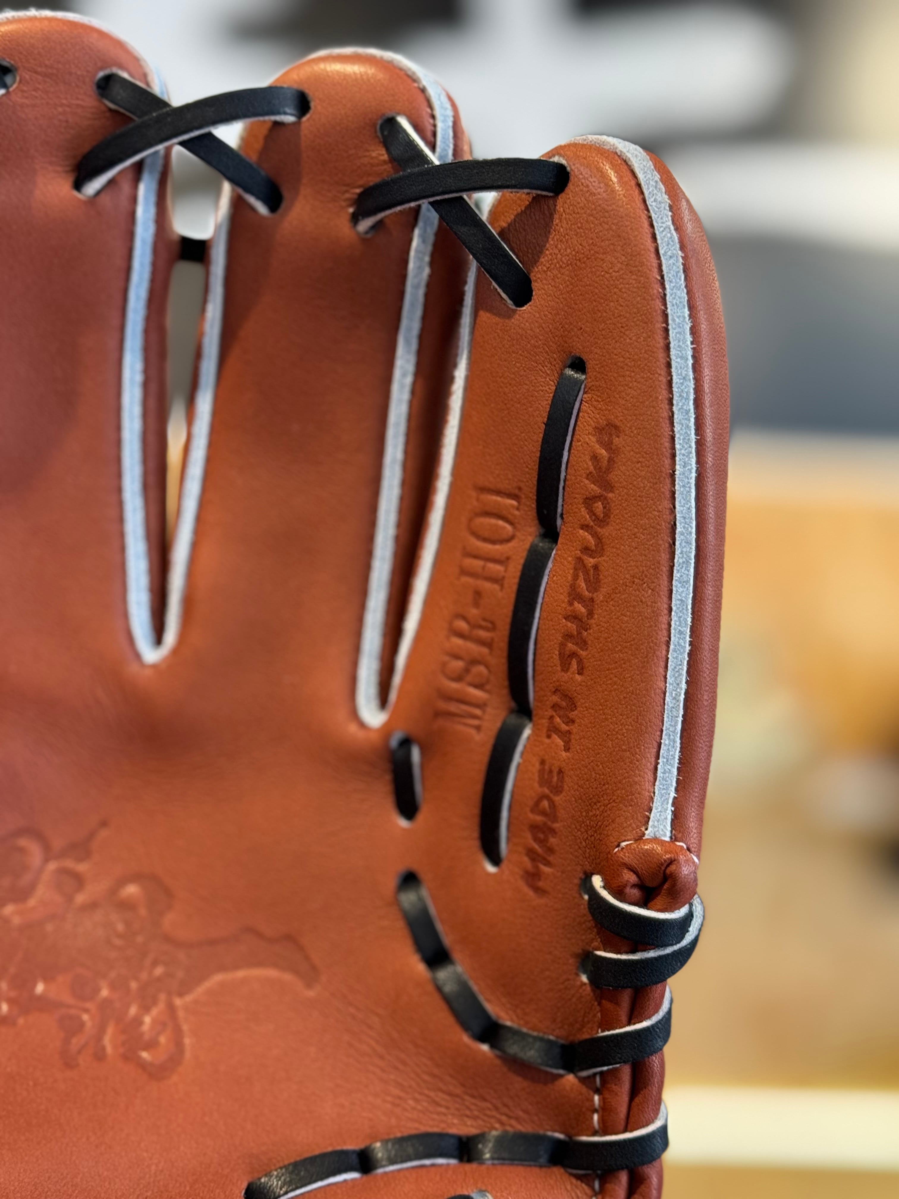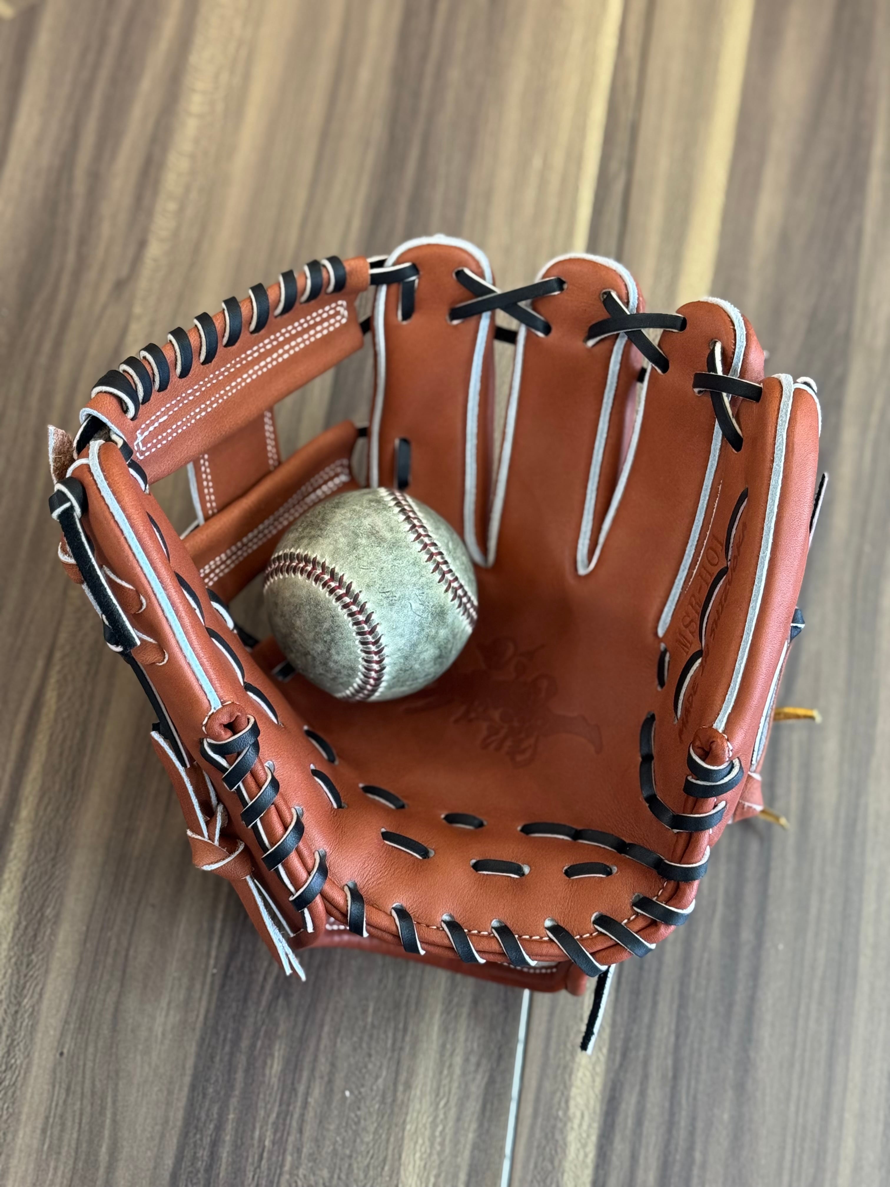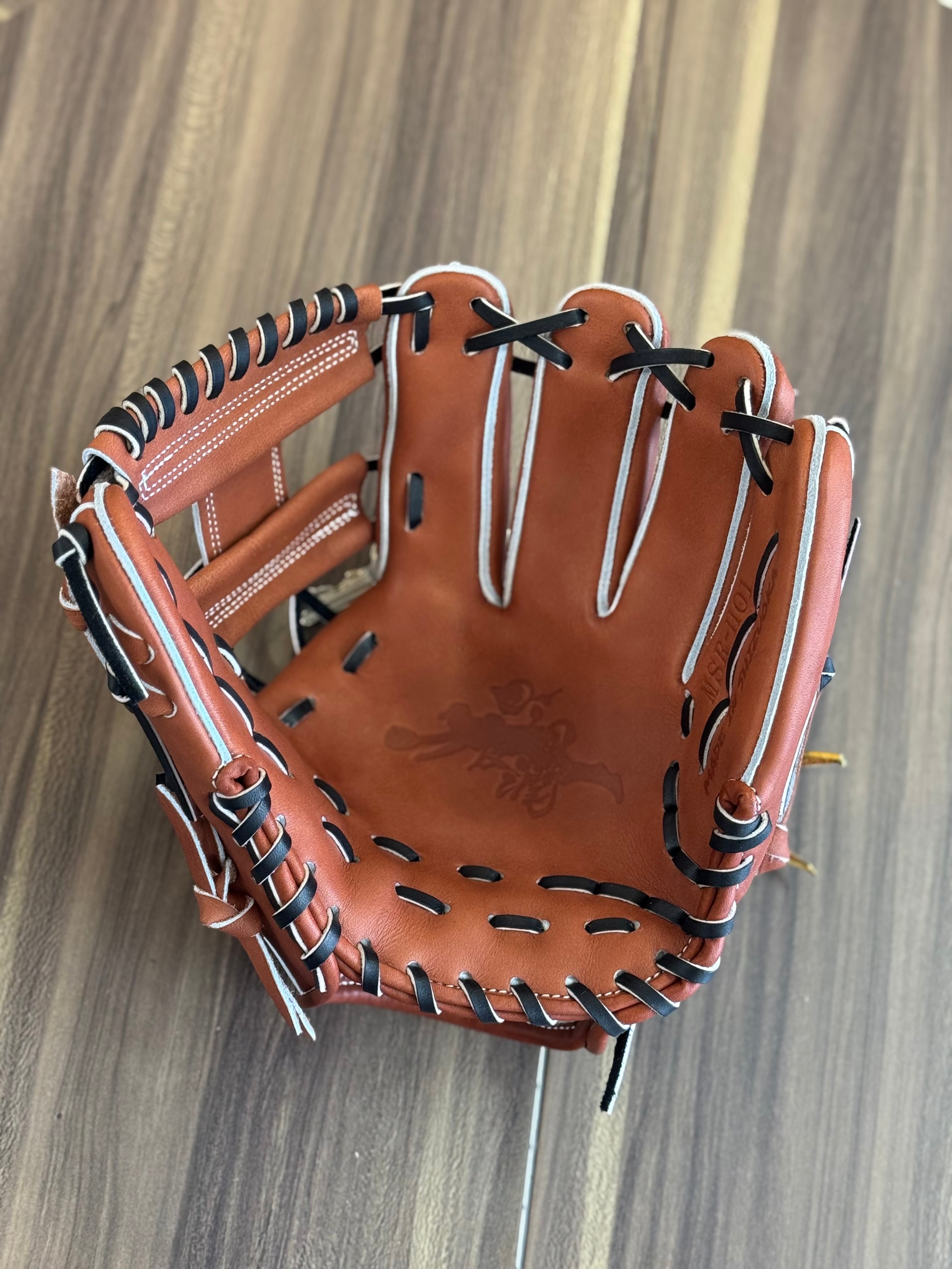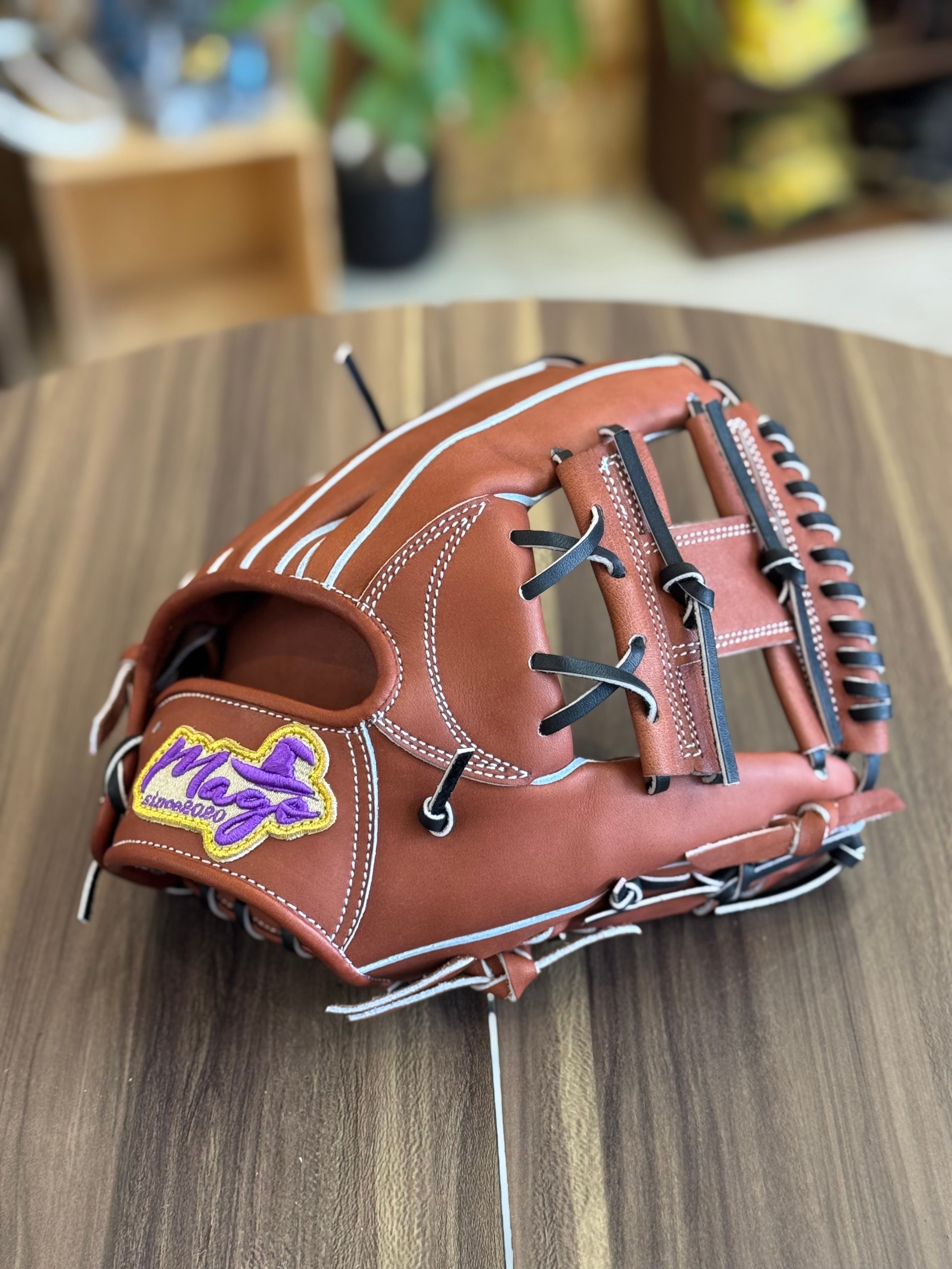 【焼津店在庫】Mago 硬式内野手 Hウェブ 指股あり小型 チョコ×ブラック中白紐 MSR-H01